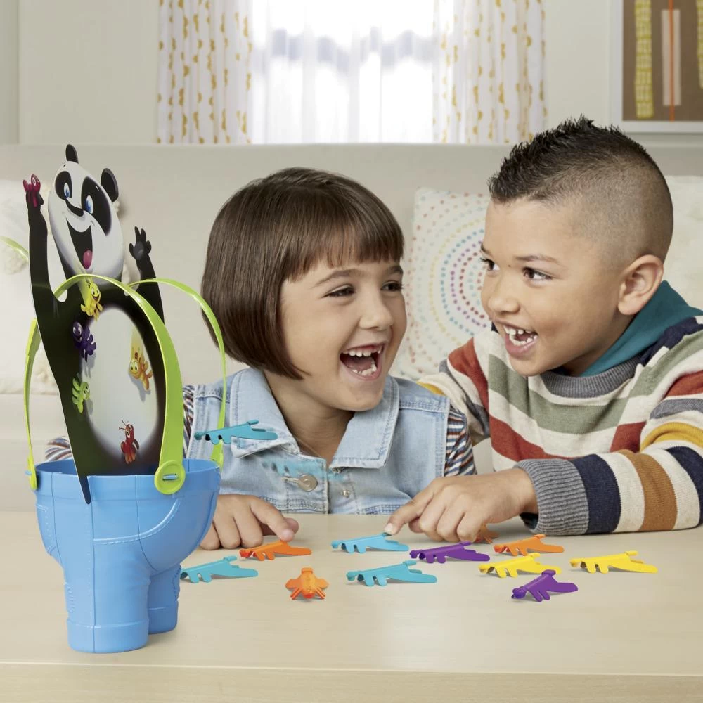 Do you remember playing the classic Ants in the Pants game as a kid? Your own kids can have so much fun playing this flip-flopping, ant-hopping game. Players choose their set of 4 matching color plastic ants. Then the flipping frenzy begins as players press on the ant’s tail, sending it flying into the panda wearing the pants! The first player to get all 4 of their ants in wins the game! It includes 16 colorful and cute plastic ants, and parts for creating a panda with pants and suspenders. The game requires no reading so it’s great for pre-schoolers and those who haven’t learned how to read yet. It’s a fun kindergarten game and indoor activity for kids. The game makes a fun gift for kids ages 3 and up, for 2-4 players. Hasbro Gaming and all related trademarks and logos are trademarks of Hasbro, Inc.