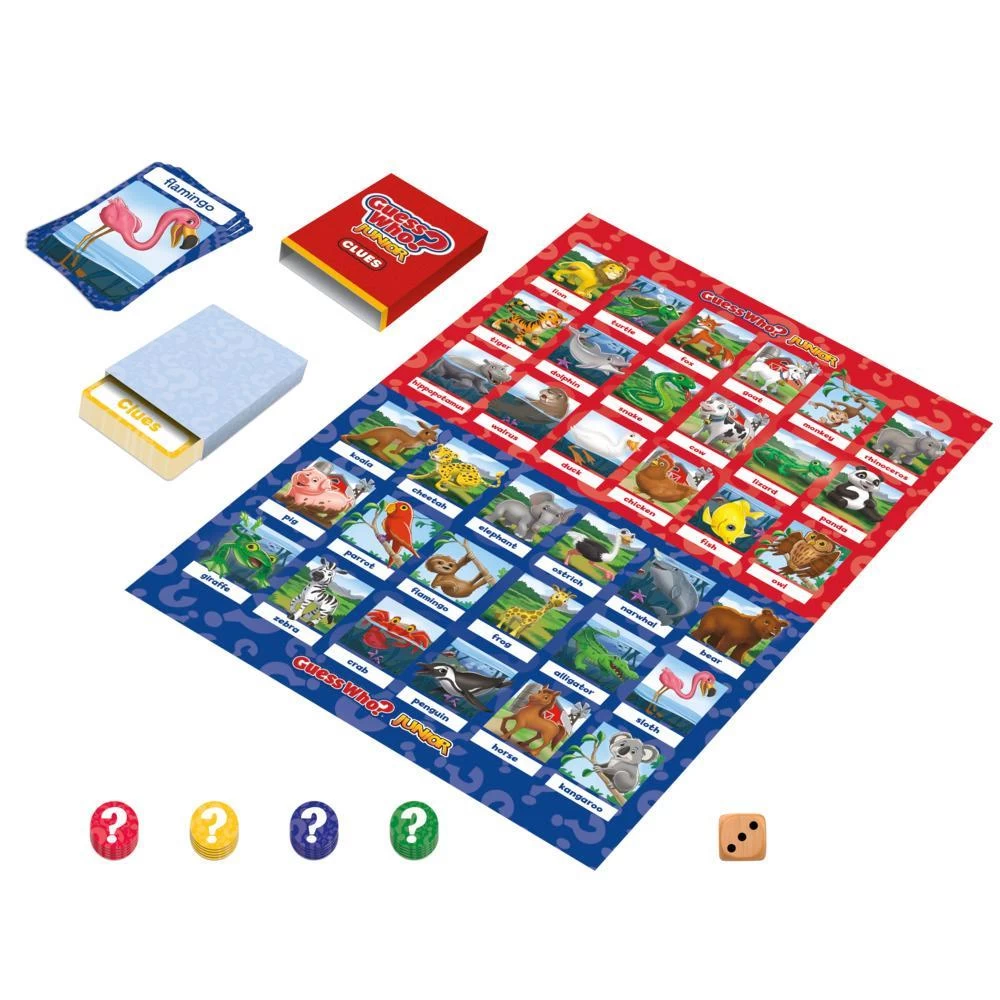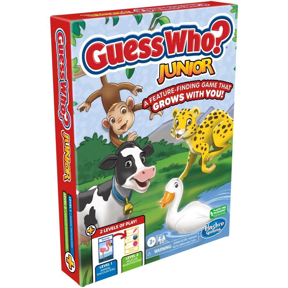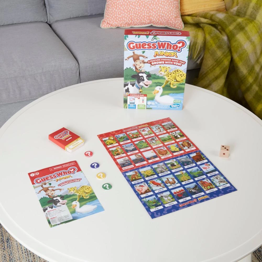 Enjoy 2 games in 1! This Guess Who? Junior board game is the animal feature-finding game that grows with your little one. Choose from 2 levels—beginner and advanced. In the Level 1 Animals Encounters game, players embark on an animal adventure, using 3 clues about an animal’s features to discover it on the board. The Level 2 Wildlife Investigators game offers more of a challenge—players roll the die to determine how many clues can be revealed. In either game, the first to discover 5 animals wins! Both games can be played using either side of the fold-out gameboard or the entire board. Boxed in plastic-free packaging, this animal-finding game includes an FSC-certified wooden die, plus 36 double-sided cards and 20 tokens, all made of FSC-certified paper goods. It’s a great kids game for playdates, the classroom, and family game night. Theora Creation. Guess Who? and Hasbro and all related terms are trademarks of Hasbro.