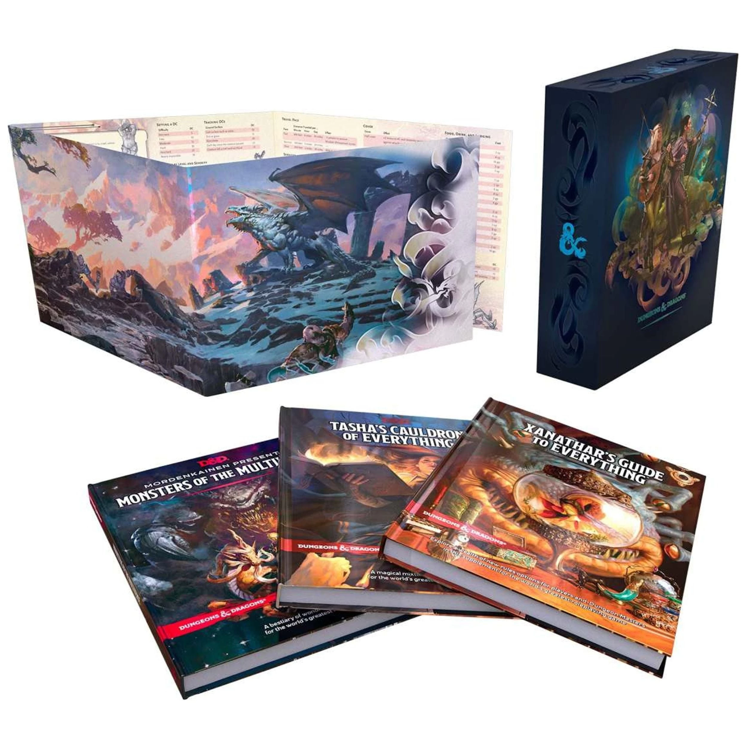 Perfectly complementing the core rulebooks, get three of D&D’s major rules expansion books, including updated versions of the best-selling Xanathar’s Guide to Everything and Tashaâ’s Cauldron of Everything, plus the debut of Monsters of the Multiverse, all in one place!