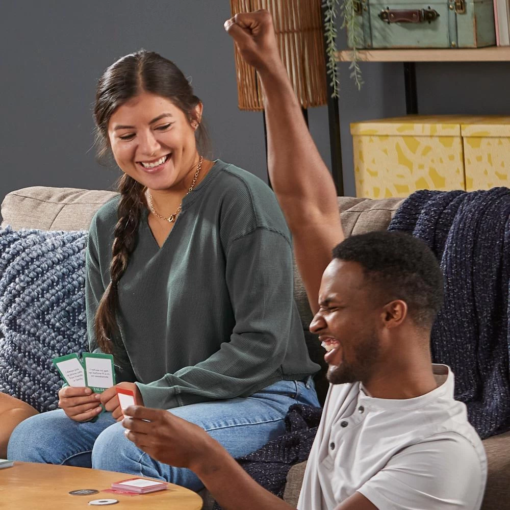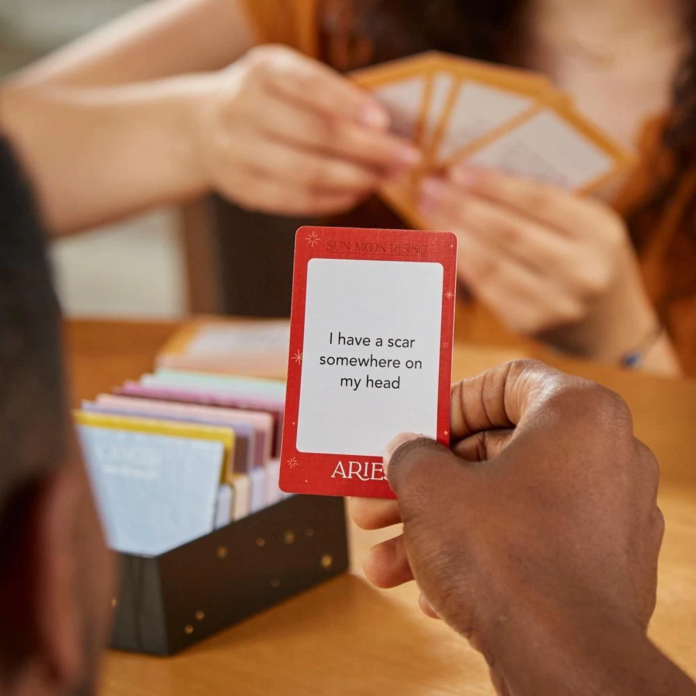 Does your sign know you better than your friends do? In the Sun Moon Rising game for 3-6 players, put your perception and intuition to the test as you vote on whether statements are true or false about your friends—and attempt to match what they say about themselves. This astrology game includes 300 double-sided cards with 50 statements personalized to each zodiac sign. Read a statement specific to your sign. Does it reflect who you are? Put it to a vote: everyone places a Sun token (true) or Moon token (false) on the table. Prove you know your friends to get rid of all your cards first to win! Choose from 3 ways to play—use the sun, moon, or rising sun deck, depending on whether you’re playing with close friends or casual acquaintances. Looking for girls night games or icebreaker games? This party card game for adults and teens 13 and up is a fabulous choice. Break it out for game night or as a group game for bachelorette parties, vacations, ski trips, and more! Sun Moon Rising and all related characters are trademarks of Hasbro. Hasbro Gaming and all related trademarks and logos are trademarks of Hasbro, Inc.