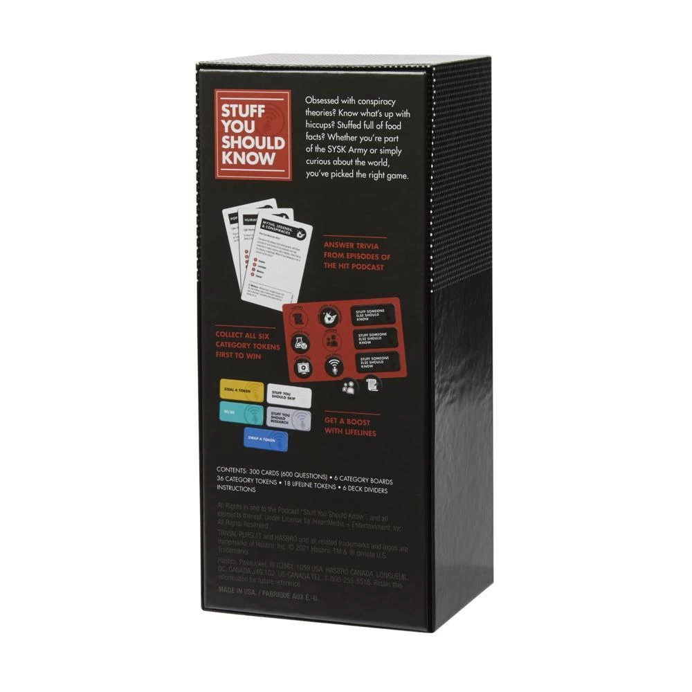 Fans of the award-winning Stuff You Should Know podcast–and those who are just curious about the world–can experience the show’s content in an exciting way with the Trivial Pursuit Game: Stuff You Should Know Edition. Get ready to challenge friends as you take turns answering interesting, obscure, and amazing trivia questions. The game features 600 questions from 6 different categories, inspired by different episodes of Stuff You Should Know. Stuck on a question? Use a lifeline such as “Stuff Someone Else Should Know”, 50/50 and more. The first player to fill their board with each of the 6 category tokens wins the game. All Rights in and to the Podcast “Stuff You Should Know”, and all elements thereof, Under License by iHeartMedia + Entertainment, Inc. All Rights Reserved. Trivial Pursuit, the associated logo, the distinctive design of the gameboard, trivia cards, game tokens, and scoring wedges are trademarks of Hasbro.