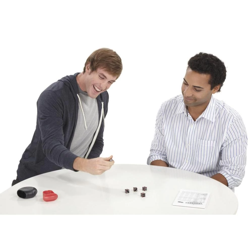 Roll it to the limit for the ultimate win with the Yahtzee Classic game. Now with a sleek shaker and casino-cool dice, you’re ready to roll! Take your 5 dice, take your 3 rolls, and fill in your score card to find the high- rolling winner. You can fill in any box on the score sheet in any order, but you must fill in 1 box during each round. So it’s up to you whether you hustle for a full house or risk it all for a Yahtzee roll. Show off what you’ve got, and let the dice fall where they may.